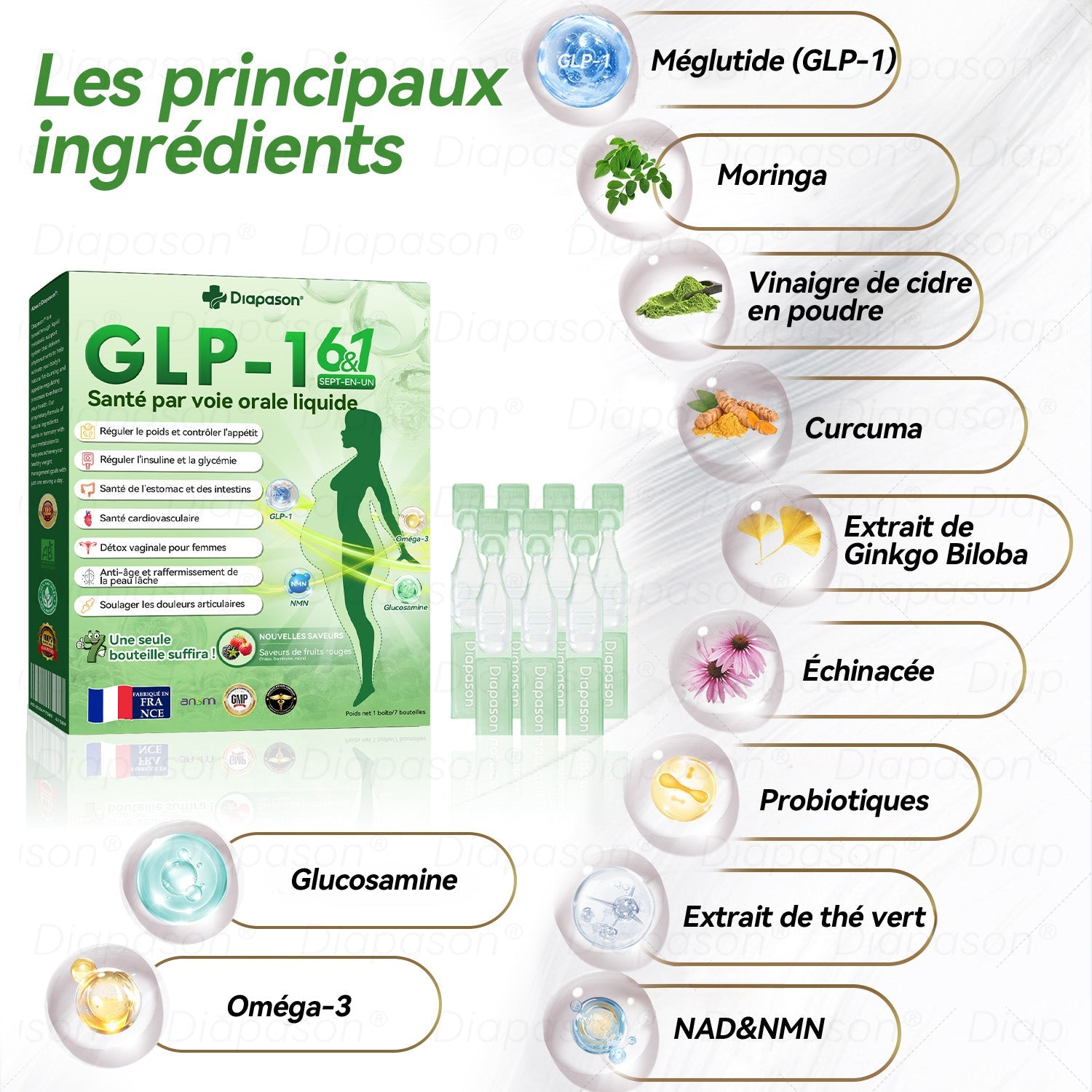 𝐃𝒊𝓪𝐩𝓪𝙨𝐨𝒏®𝐺𝐿𝑃-1 𝑆𝑒𝑝𝑡-𝑒𝑛-𝑢𝑛 𝑆𝑎𝑛𝑡é 𝑝𝑎𝑟 𝑣𝑜𝑖𝑒 𝑜𝑟𝑎𝑙𝑒 𝑙𝑖𝑞𝑢𝑖𝑑𝑒 a été développé par une équipe de plus de 30 experts en endocrinologie et diabétologie internationales après plus de 3 ans de recherche. Il associe le tirzépatide à de puissants ingrédients à base de plantes pour stimuler le métabolisme, accélérer la combustion des graisses et favoriser la santé digestive et lymphatique. Cette solution buvable a été approuvée par la Food and Drug Administration (ANSM) française pour son innocuité et son efficacité, offrant une solution scientifiquement prouvée pour la perte de poids et le bien-être général.