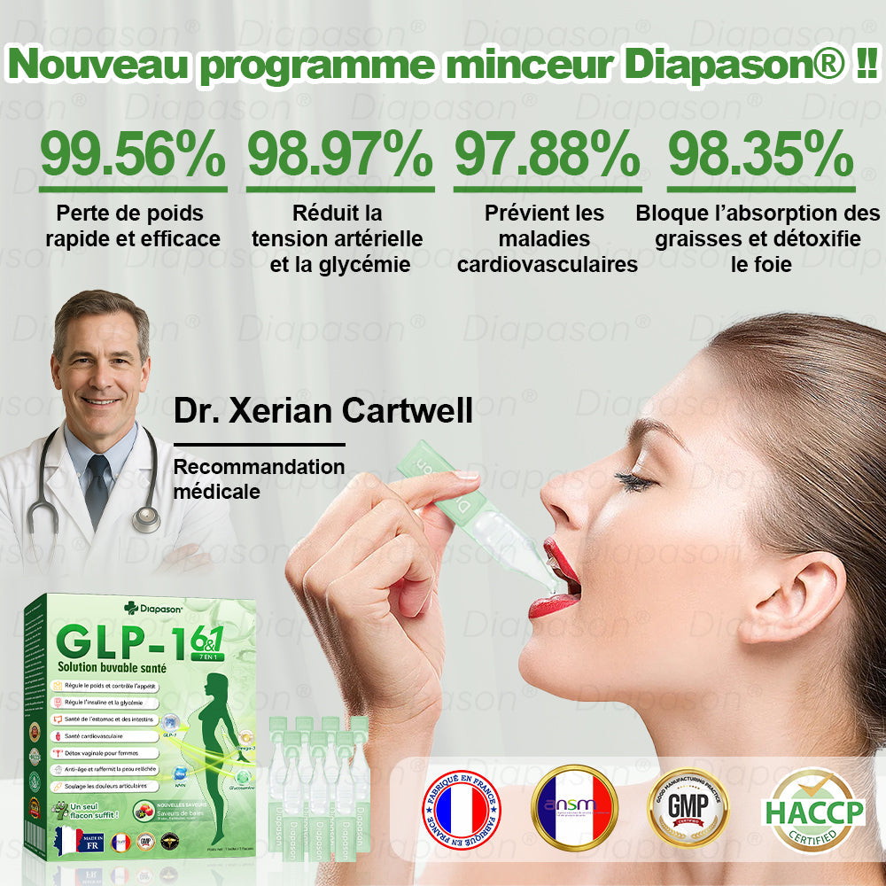 𝐃𝐢𝐚𝐩𝐚𝐬𝐨𝐧® 𝐆𝐋𝐏-𝟏 𝐒𝐞𝐯𝐞𝐧 𝐢𝐧 𝐎𝐧𝐞 𝐇𝐞𝐚𝐥𝐭𝐡 𝐒𝐨𝐥𝐮𝐭𝐢𝐨𝐧 𝐎𝐫𝐚𝐥 𝐋𝐢𝐪𝐮𝐢𝐝 a été développé par une équipe de plus de 30 experts en endocrinologie et diabétologie internationale après plus de 3 ans de recherche. Il combine le Tirzepatide avec des ingrédients végétaux puissants pour stimuler le métabolisme, accélérer la combustion des graisses et soutenir la santé digestive et lymphatique. Cette solution orale a été approuvée par l'Agence Nationale de Sécurité du Médicament et des Produits de Santé (ANSM) pour sa sécurité et son efficacité, offrant une solution scientifiquement prouvée pour la perte de poids et le bien-être général.